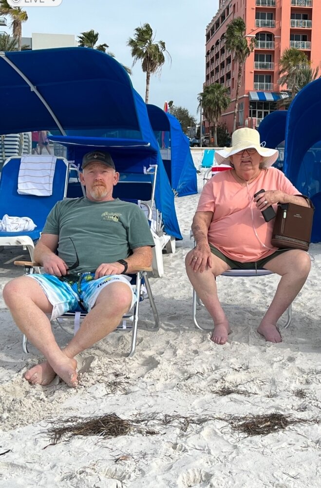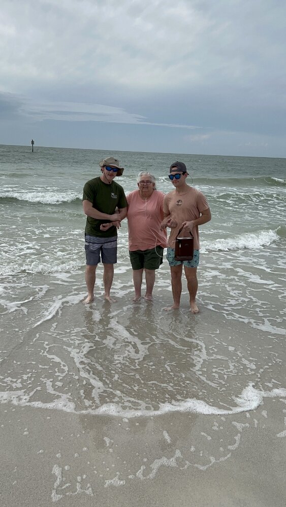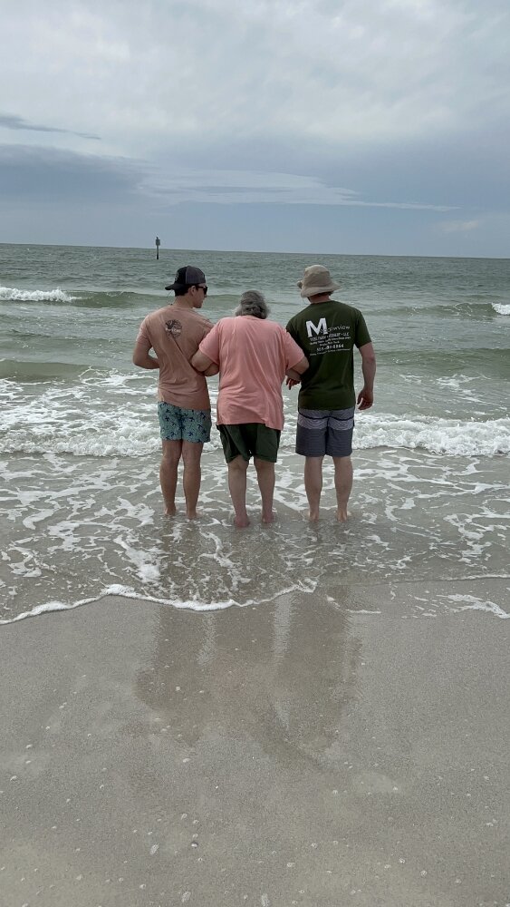 I have many memories of my mom. Its so hard to just pick one. I can remember all the things she did to help moving be an easy transition. When I was younger, I couldn't go out and play with the other kids. She managed to get me an Atari so I had something to do. As the years went by, she always managed to get us things we needed. So a couple years ago, I was able to do something for her. She and my dad came down to Florida and we took her to clearwater beach. She was able to put her toes in the water one last time. I can remember the look on her face. I'm not sure if it was because she was happy, or because we found the coldest day of the year and the water was freezing. Afterwards, she and my dad sat on the beach. Even though it wasn't a very sunny day, she just sat there and we talked about "stuff". Love always, I'll see you again.